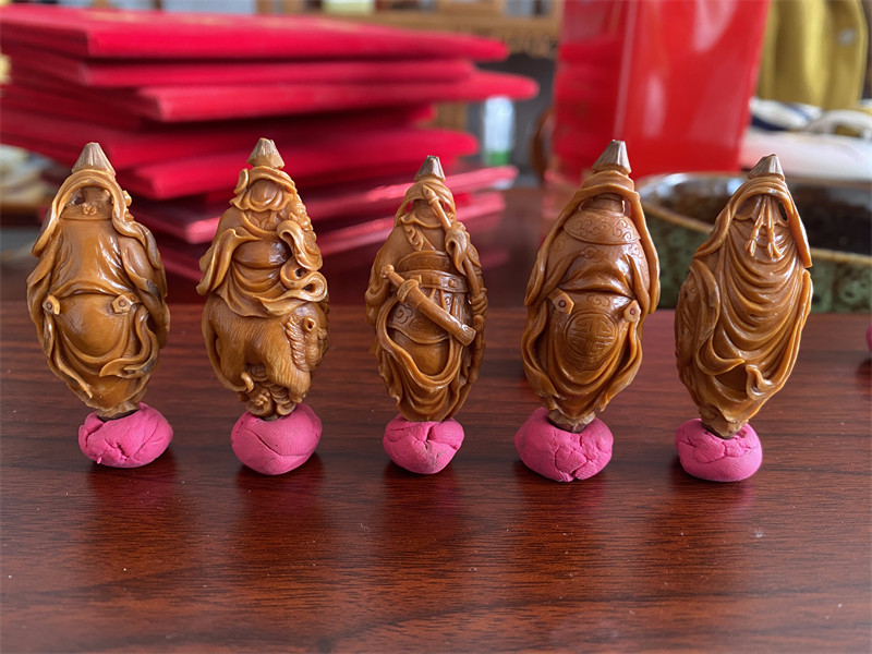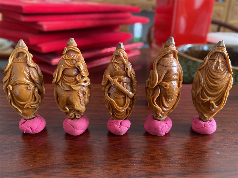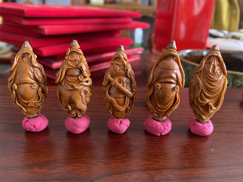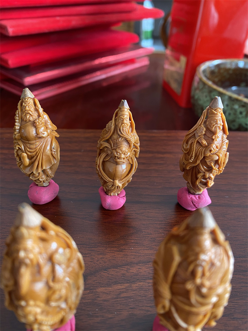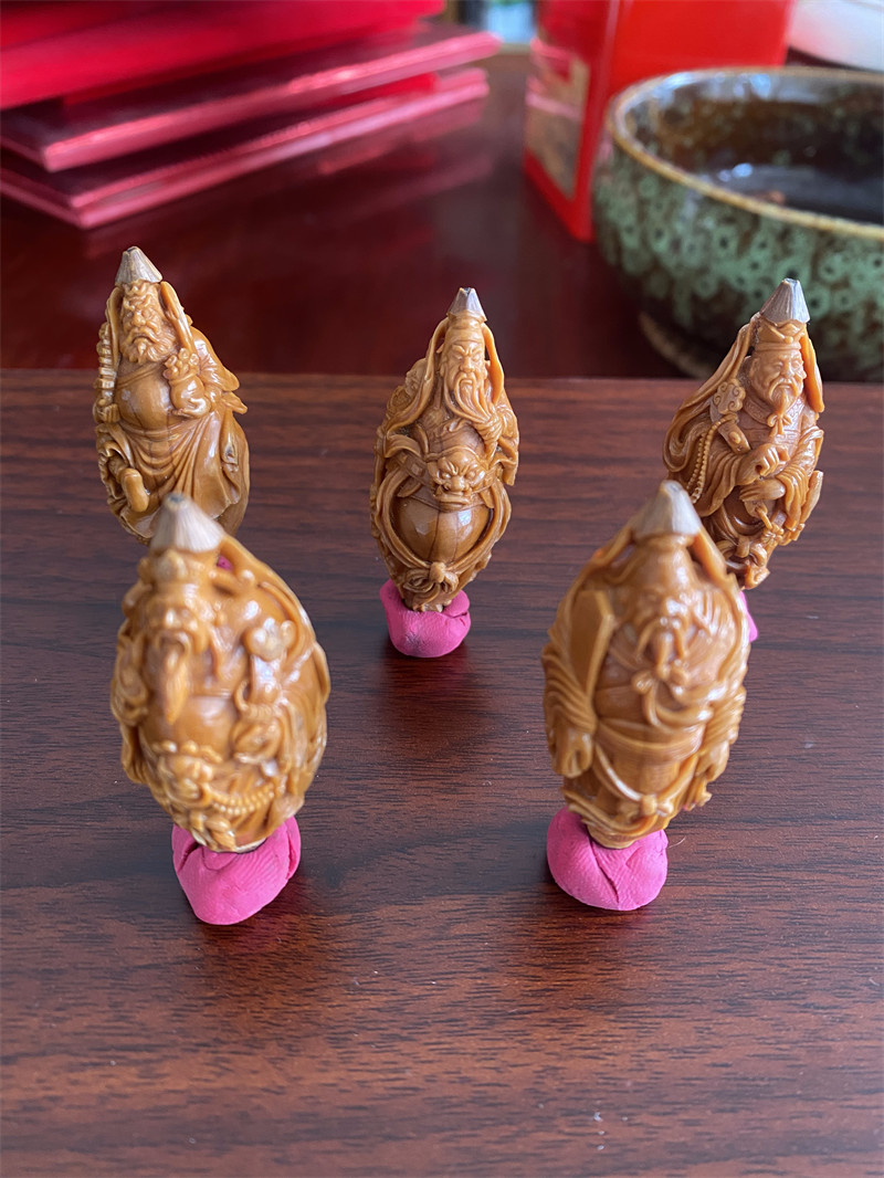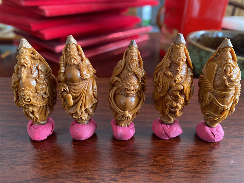五路财神核雕不仅是对财富的追求,更体现了藏传佛教中物质与精神的平衡观,通过精巧的雕刻工艺将传统文化融入日常佩戴,成为兼具审美与寓意的文玩选择。